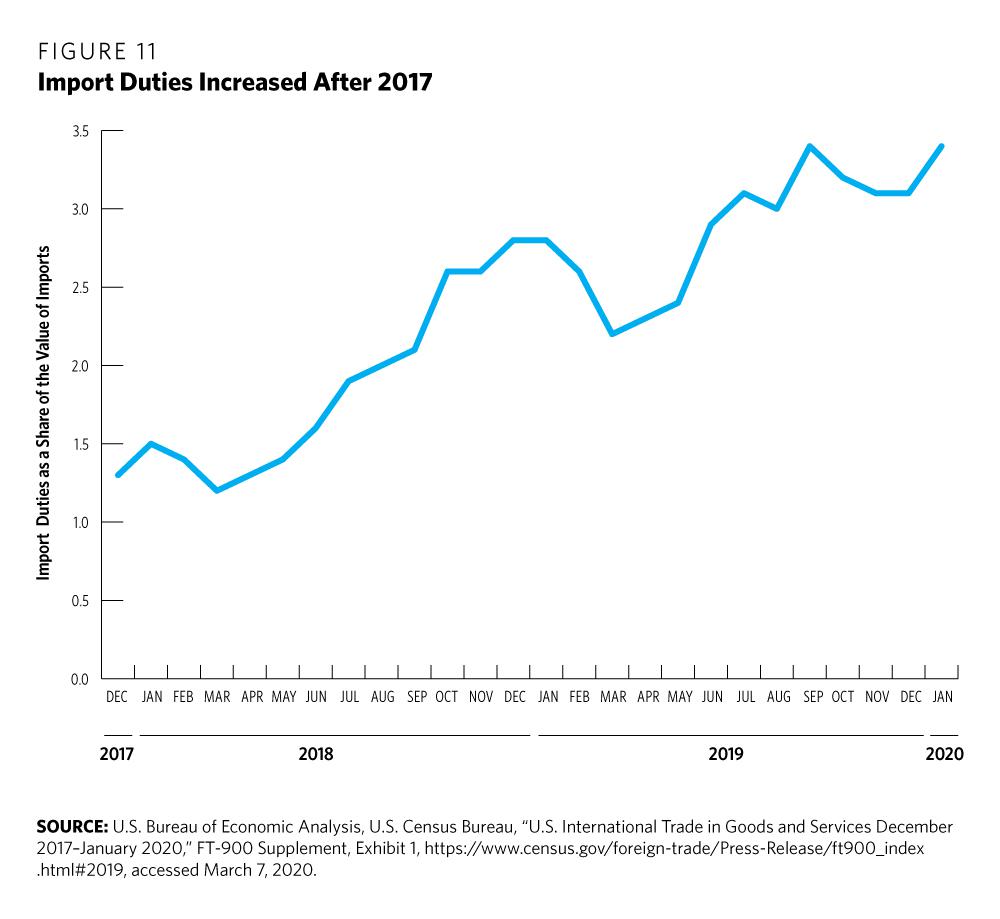 The administration has argued that these recent tariffs were imposed to encourage trading partners to open up their markets to U.S. goods and services and, in the case of China, to halt practices that violate the intellectual property rights of U.S. companies. Thus, from this perspective, these tariffs may be lifted when trade negotiations are resolved in the future. For example, tariffs imposed on $120 billion of Chinese goods on September 1, 2019, are being reduced as part of the phase one trade deal signed in January 2020 (the burden of tariffs imposed in 2018 and 2019 will still be considered later in this section).