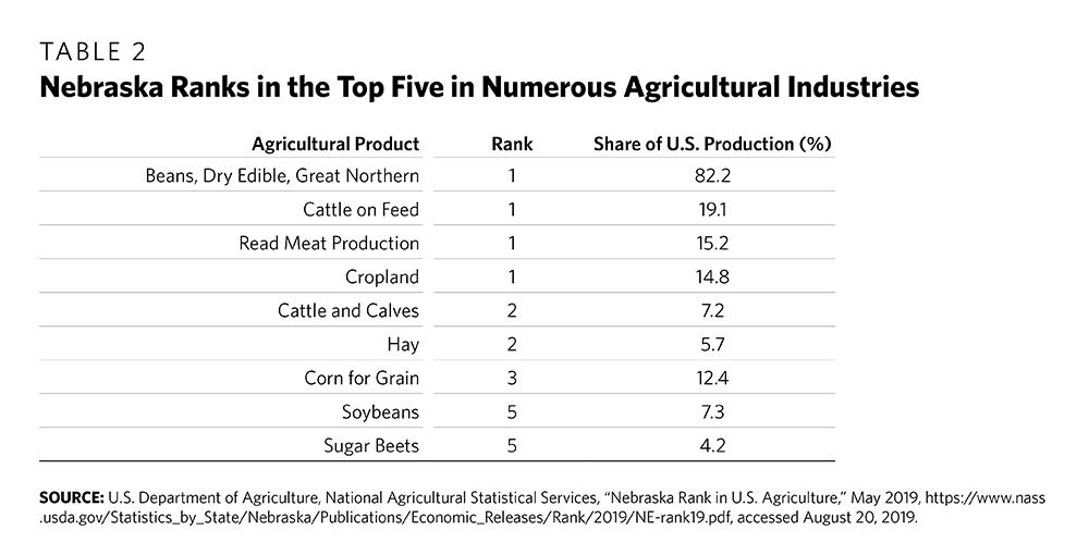12 Nebraska Farm Bureau, “Nebraska Agriculture and International Trade,” 2016 data, https://www.nefb.org/images/FEDeration/PDFs/NE-Agriculture-International-Trade.pdf.